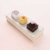 | 原材料名 | 砂糖(国内製造)、手芒豆、小豆、クリームチーズ、甘夏、いちごピューレ、餅粉、水飴、卵、還元水飴、洋酒、レモン果汁、寒天、みりん、コーンスターチ / トレハロース、着色料(カルミン酸) |