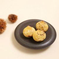栗と白餡を合わせ、ひとくちサイズの栗の形に焼き上げました。口に含むとほろっと崩れ、上品な餡ならではのやわらかな味が広がります。当店の秋に欠かせない、人気の一品です。