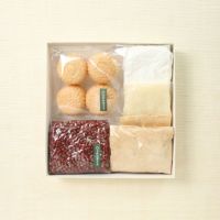小豆(北海道産):250g てんさい糖(北海道産):220g もなか種:6組 道明寺:100g 白玉粉:100g きな粉:2袋 レシピ付 ※おはぎ10個、おぜんざい2から3人分、菊もなか6個がお作りいただけます。 |