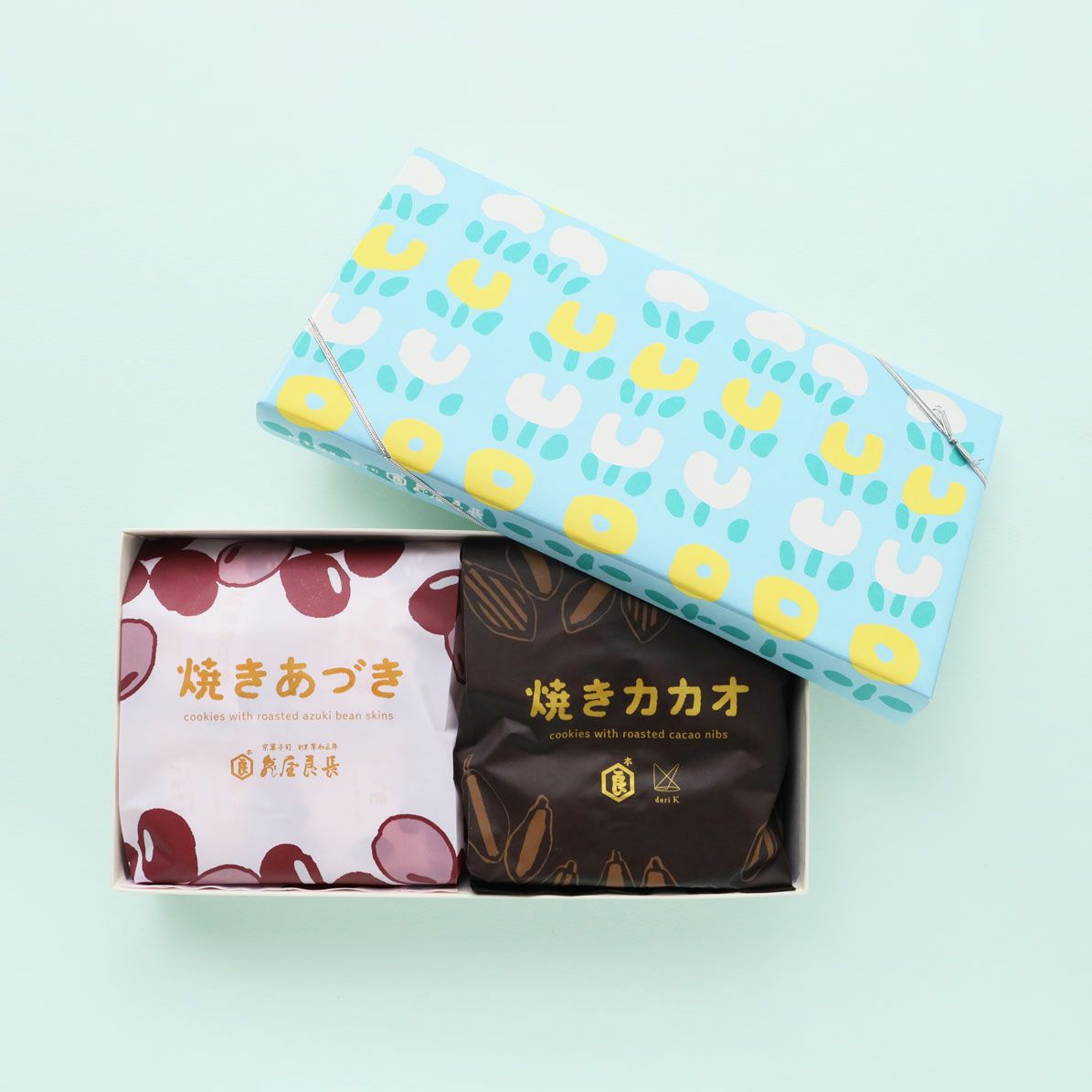 人気の焼きあづき、焼きカカオを可愛らしいお箱に詰め合わせました。贈り物におすすめです。