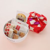 | 箱サイズ・重量(外装含む) | 箱サイズ:直径約21cmの円形 風呂敷サイズ:約54×54cm(綿100%、日本製) |