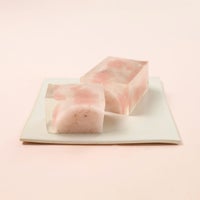 餅羊羹の中には桜の塩漬けが入っていて、羊羹で抜いた桜型が、華やかに春のにぎわいをあらわしています。