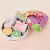 | 箱サイズ・重量(外装含む) | 箱サイズ:直径約21cmの円形 風呂敷サイズ:約54×54cm(綿100%、日本製) |