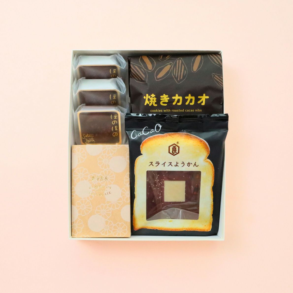 バレンタインの贈りものにぴったりな、カカオ菓子の詰合せです。