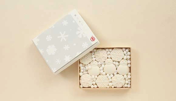 箱を開けると思わずにっこり。 愛らしい雪だるまと結晶の和三盆を、小箱に詰合せました。 クリスマスのプチギフトにもおすすめです。 雪だるまの表情に、ほっこり癒されてください。