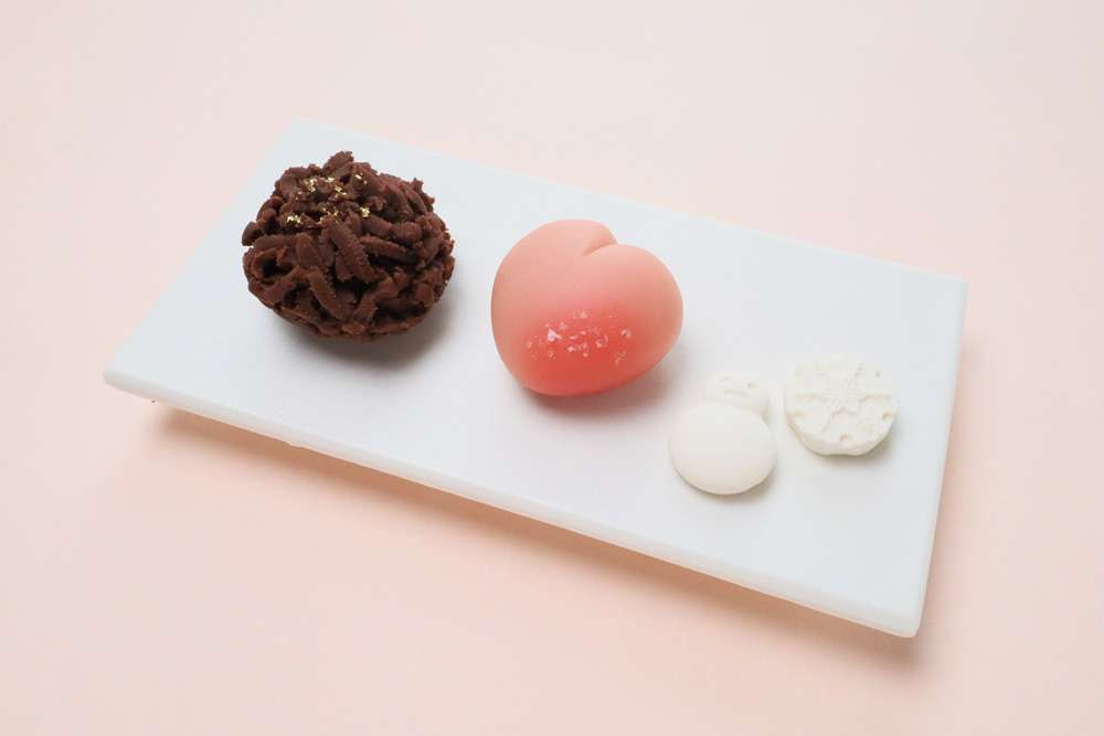 *生菓子をお作りいただいた後は、季節に合わせた和三盆の実演をご覧いただき、お客さまに実食いただきます。出来立ての和三盆の口どけをお愉しみください。和三盆の意匠はお任せとなります。
