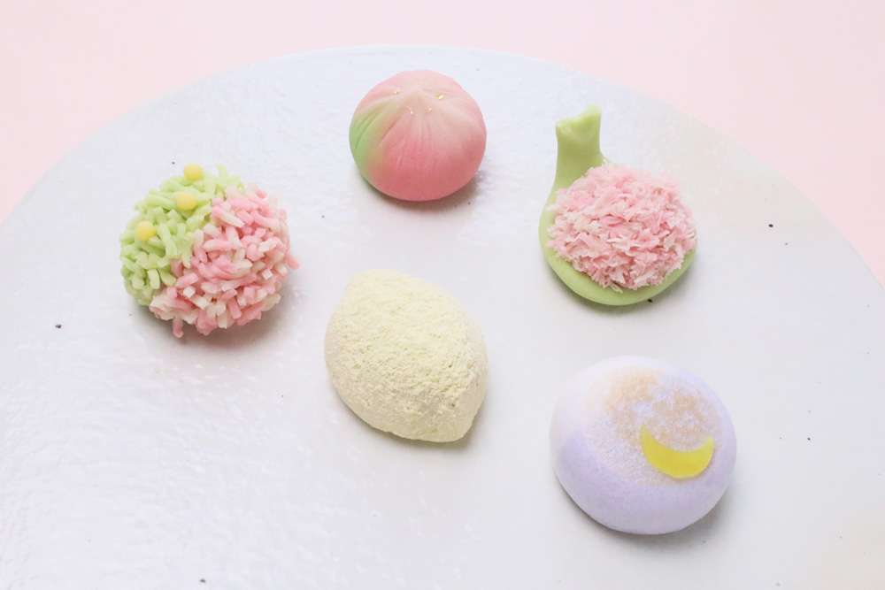 ひな祭りに欠かせない桃花の蕾を、茶巾絞りの練り切りで表現いたしました。