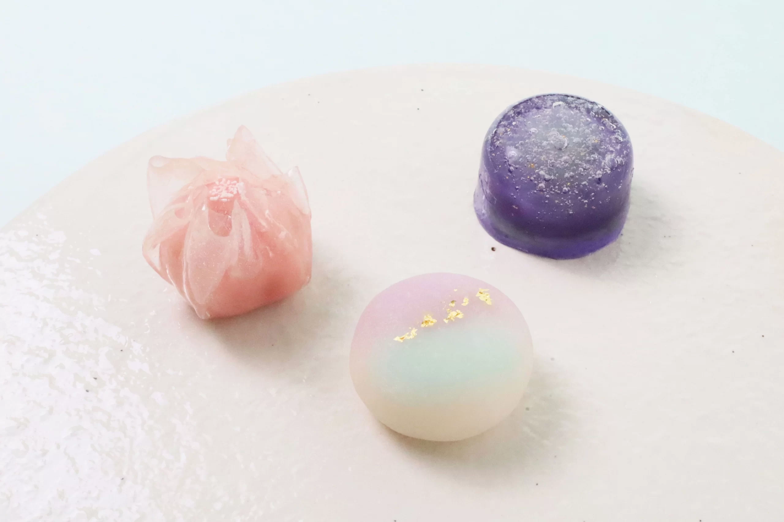 ドーム型の錦玉羹で青く染めた白餡を包み、気泡や金箔で満天の星空をあらわしています。