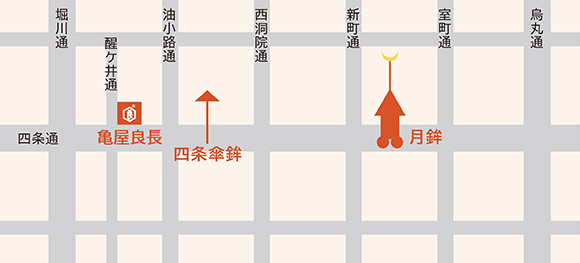 また、四条通り沿いに建つ「月鉾」「四条傘鉾」では、祇園祭にちなんだお菓子を販売いたします。