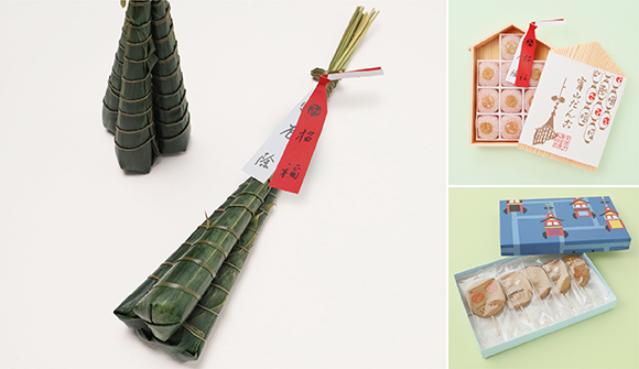 縁起菓子「ちまき」は年に2回のみの販売ですので、ぜひお見逃しなく。他にも、「宵山だんご」や、「夏たより」など、祇園祭のお土産にぴったりなお菓子をご用意しております。