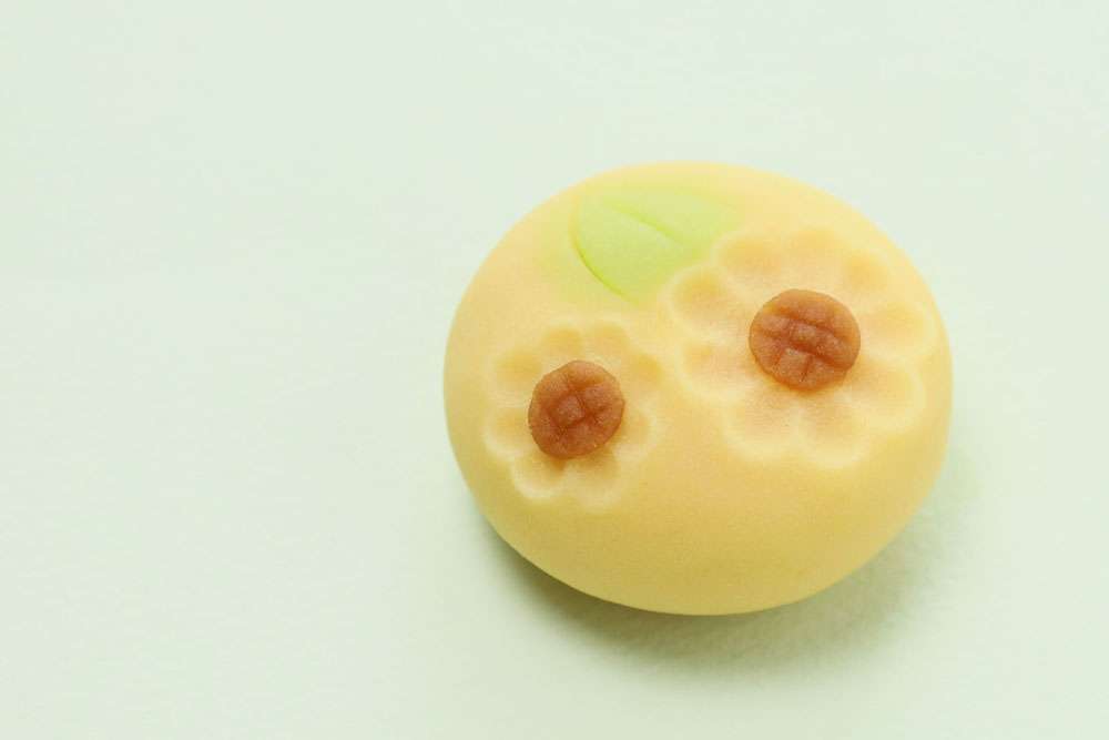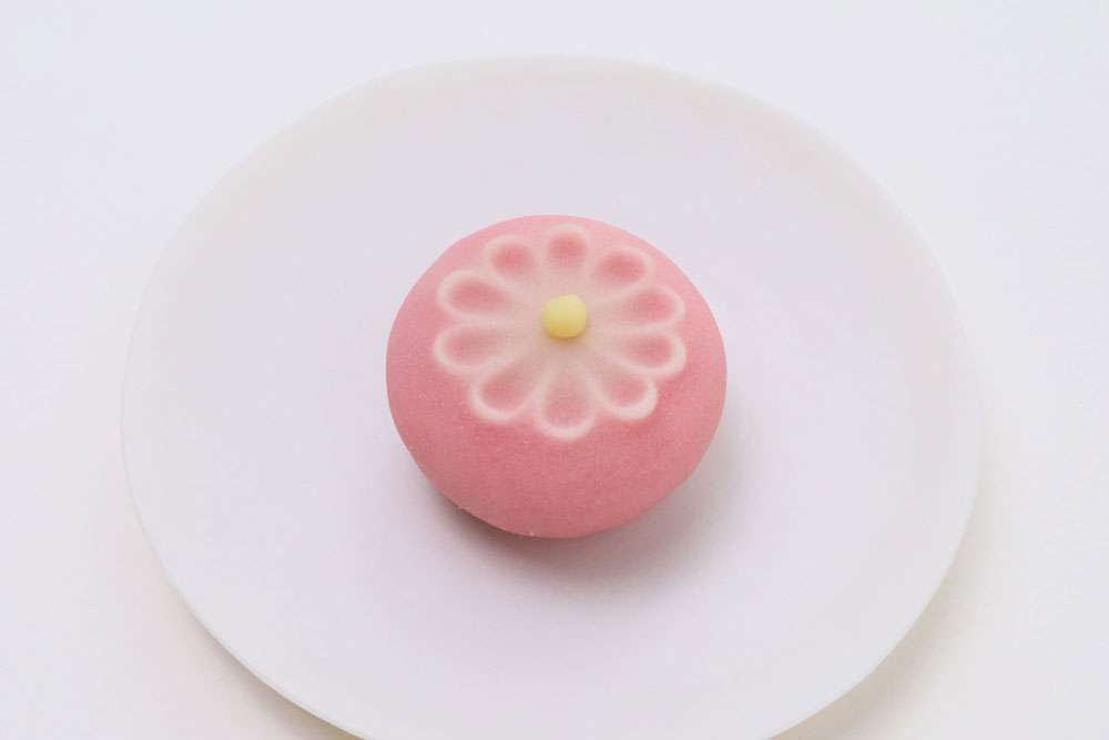*当店で昔からお作りしている「菊日和」の意匠をヒントに、練り切りに型押しで花びらを表現いたしました。