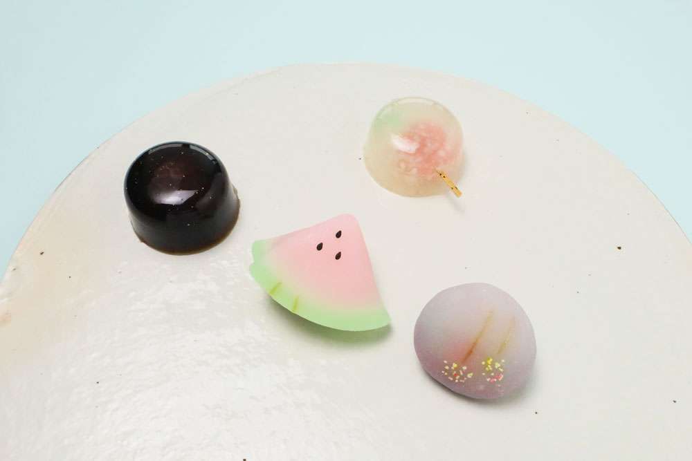 晴れた夜空に光り輝く星々を、錦玉羹と黒糖羹であらわしました。