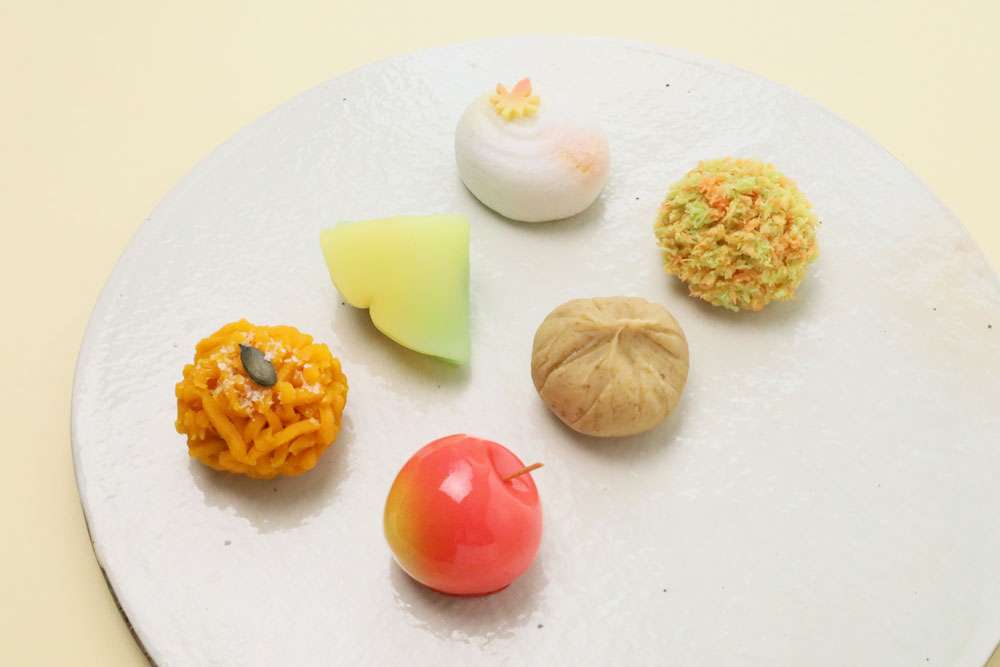 紅葉で彩り豊かに色づく山々の様子をきんとんであらわしました。