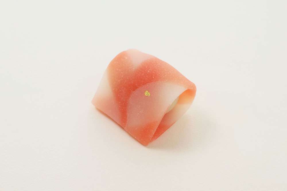 色づいていくひとひらの葉を、外郎のたたみものであらわしました。
