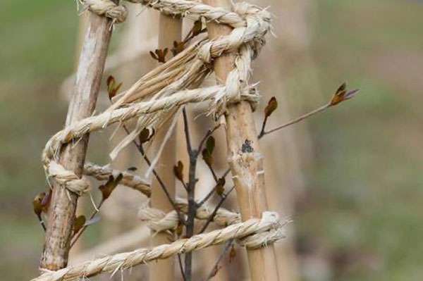 冬囲いとは、雪や冷たい風から樹木を守るために、縄や竹、筵などで囲ったり支えたりする作業のことです。