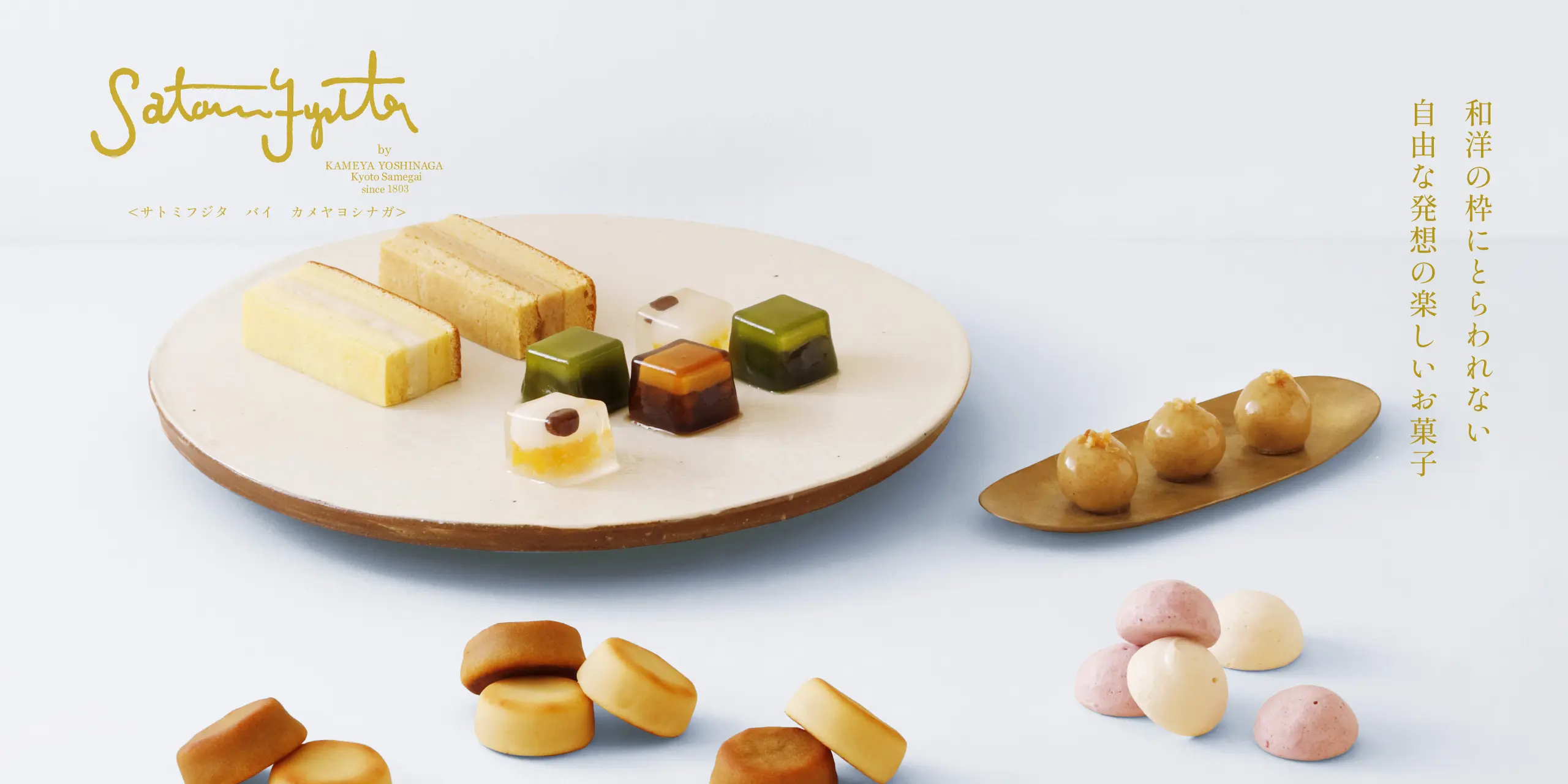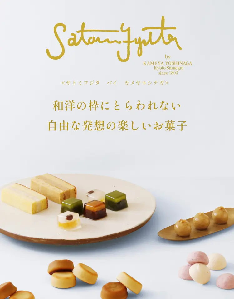 Satomi Fujita by KAMEYA YOSHINAGAでは、亀屋良長の伝統に私のエッセンスを加えた楽しいお菓子が作れたらいいなと思います。
