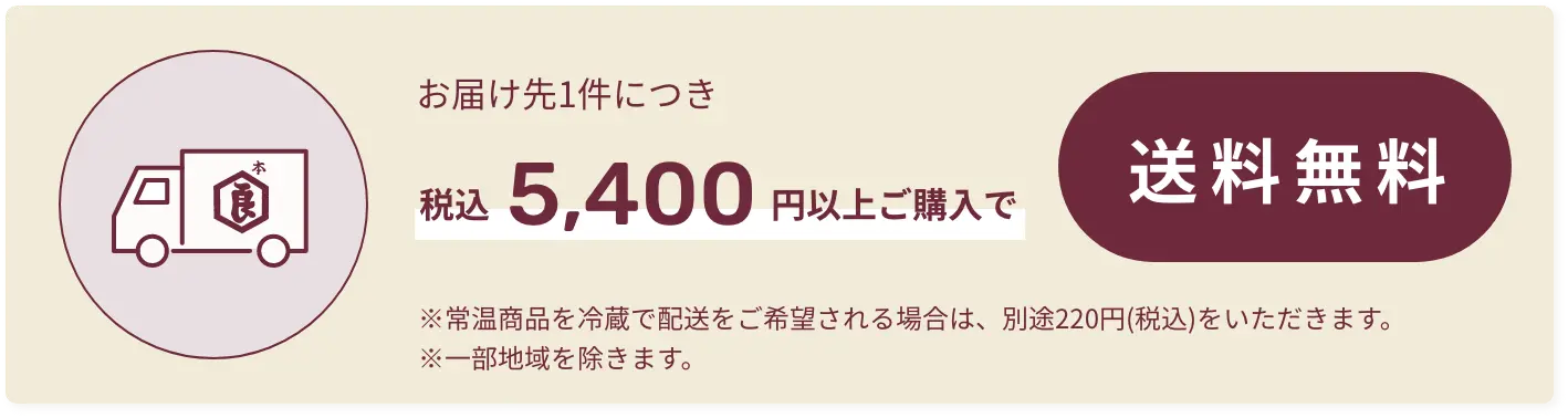 - クール便配送料は下記常温便送料に+330円(税込)の金額です。