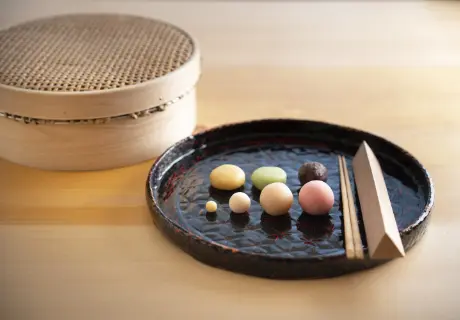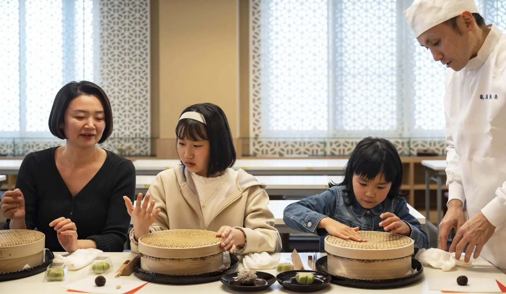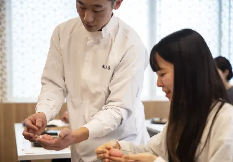 - Making two fresh confectioneries. (Nerikiri and Kinton)